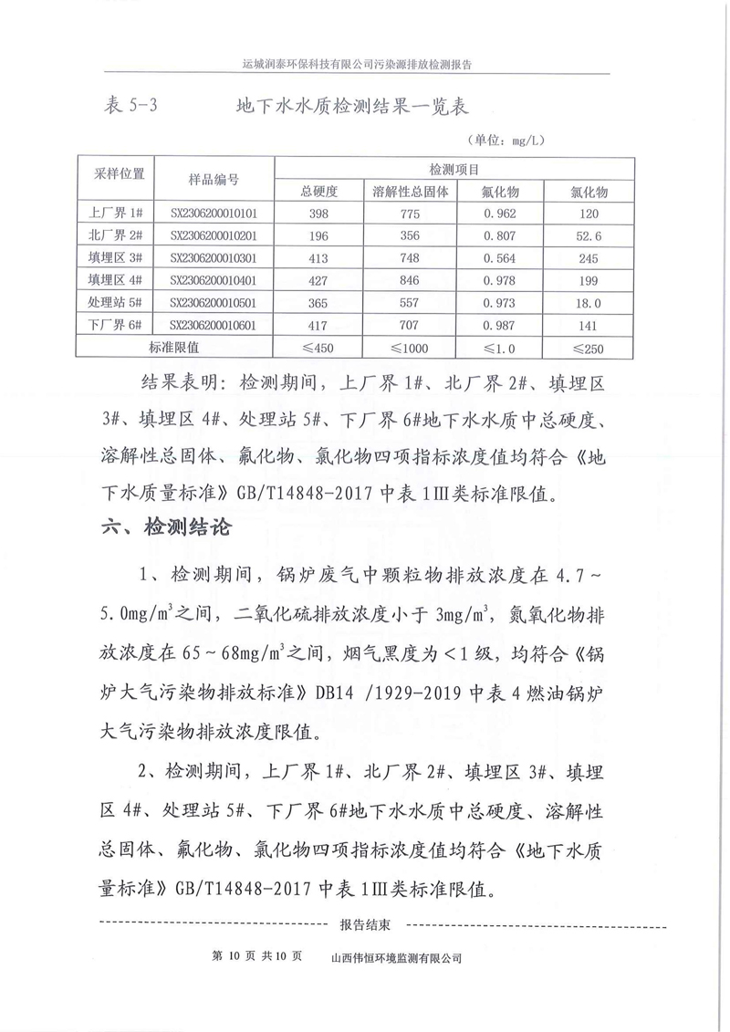 潤泰環(huán)保6月份鍋爐+地下水