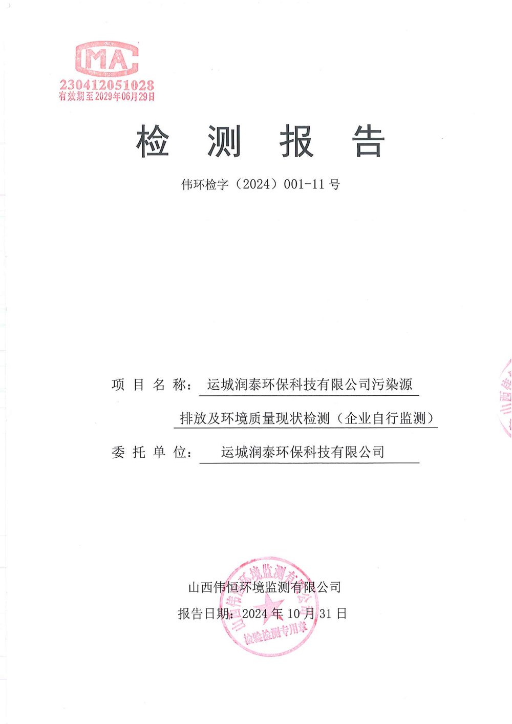 2024年潤(rùn)泰環(huán)保十月報(bào)告-公示