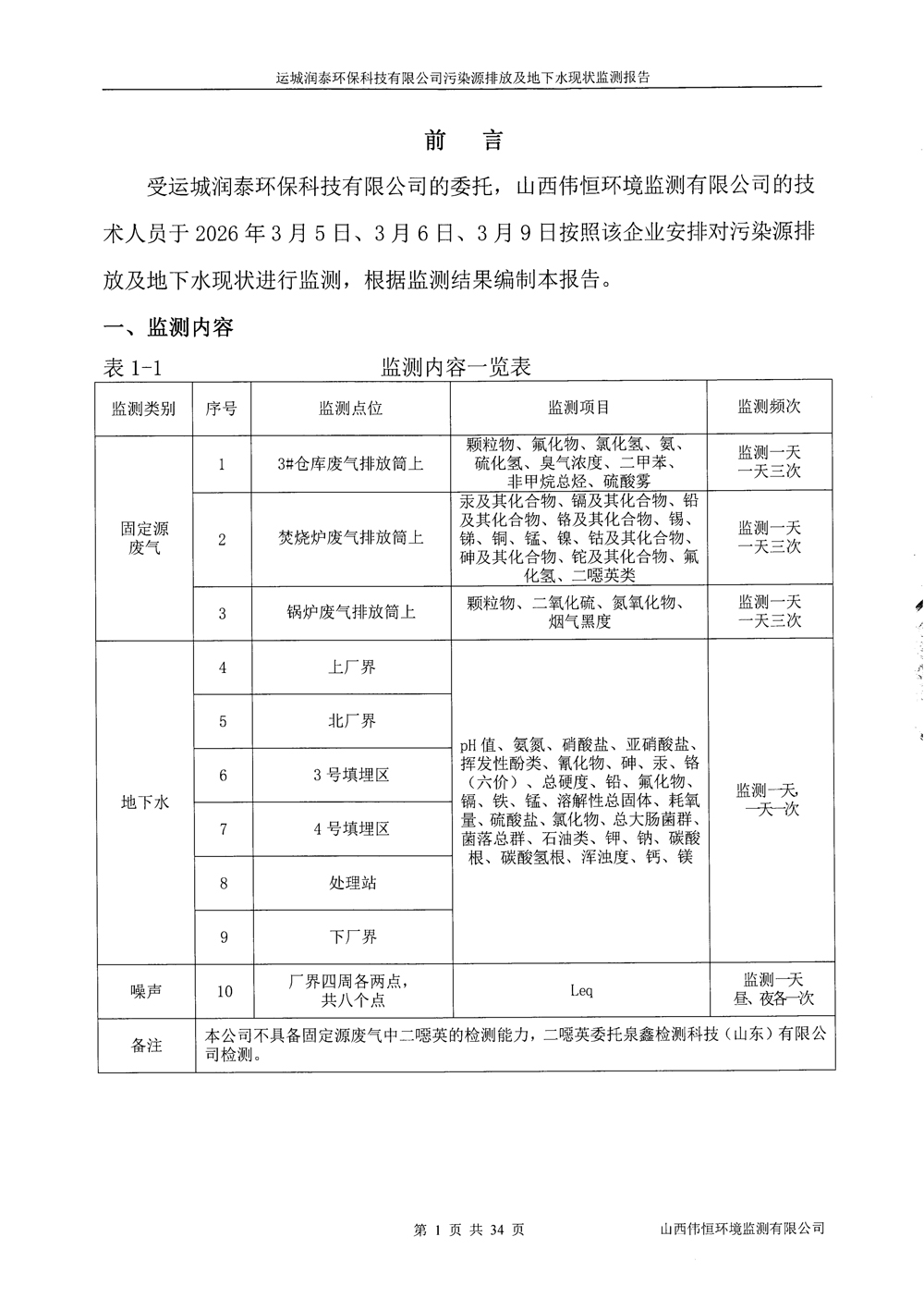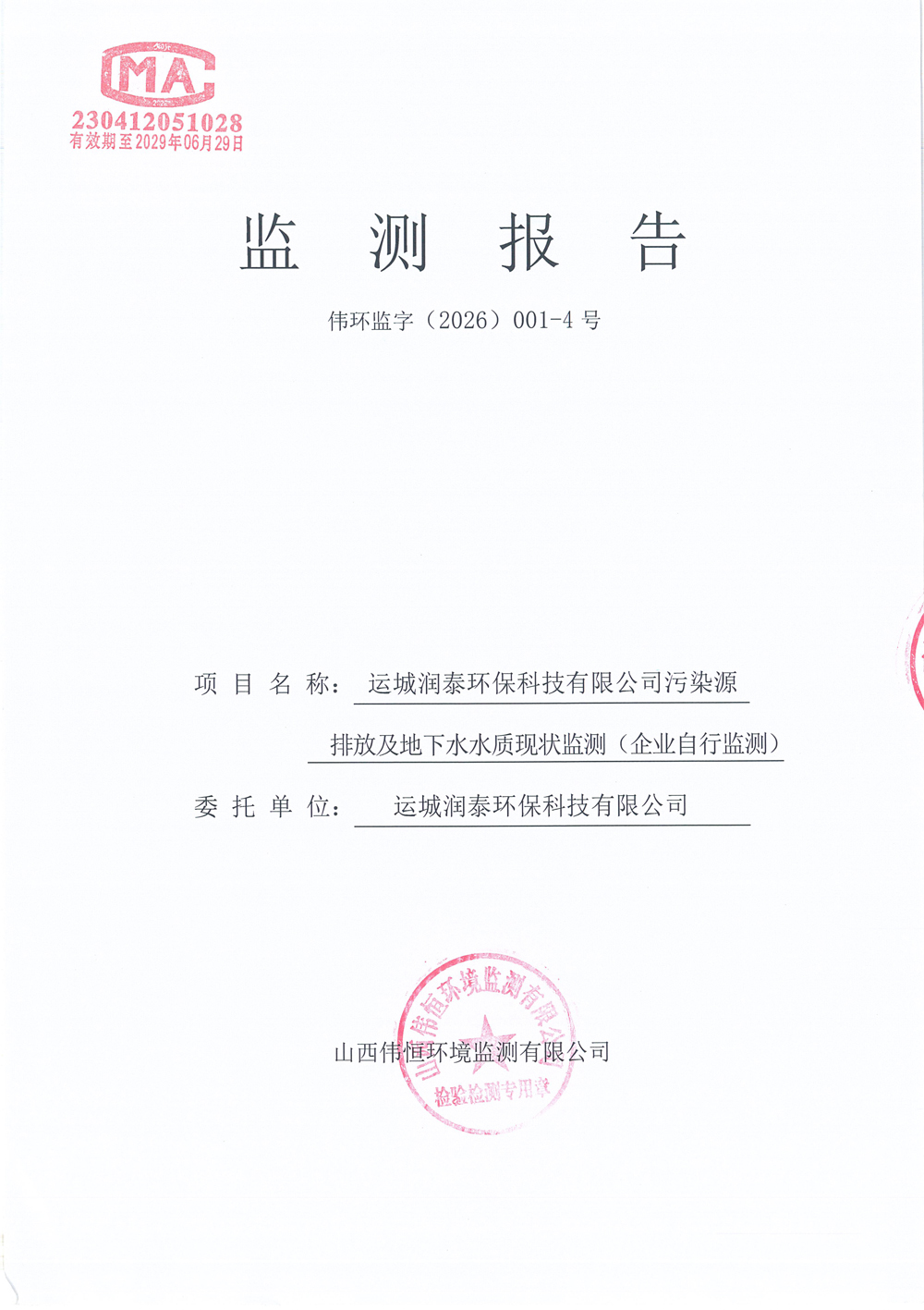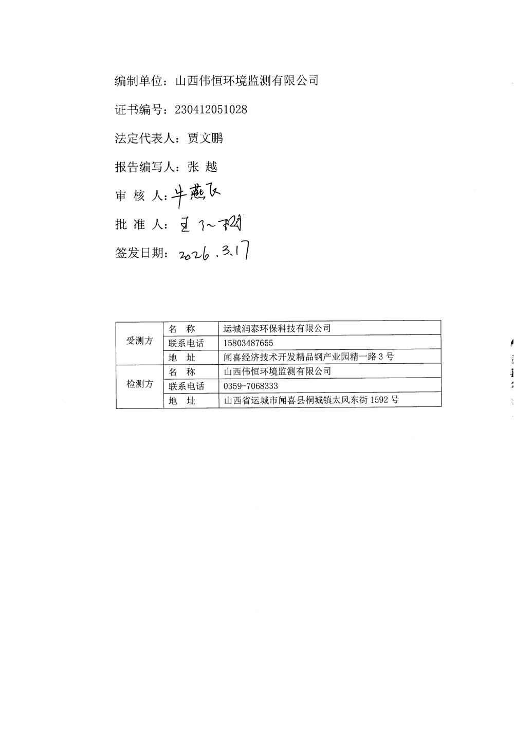 2026年潤(rùn)泰環(huán)保三月份自行監(jiān)測(cè)報(bào)告