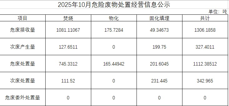 2025年10月危險(xiǎn)廢物處置經(jīng)營信息公示