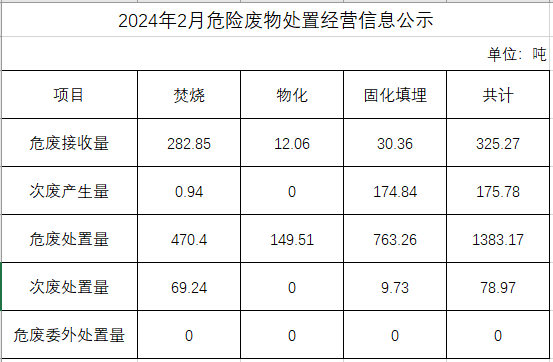 2月危險(xiǎn)廢物處置經(jīng)營(yíng)信息公示